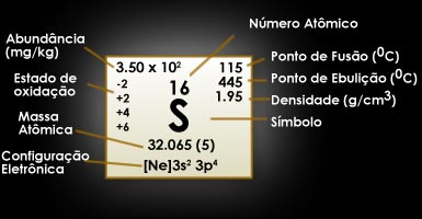 de enxofre. É insolúvel em água, parcialmente solúvel em álcool etílico, porém se dissolve em dissulfeto de carbono. É multivalente e apresenta como estados de oxidação mais comuns