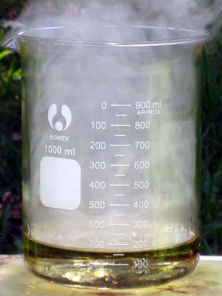 viscosidade é alcançado numa temperatura em torno de 200 °C. Esfriando-se rapidamente este líquido viscoso obtém-se uma massa elástica, de consistência similar a da goma, denominada