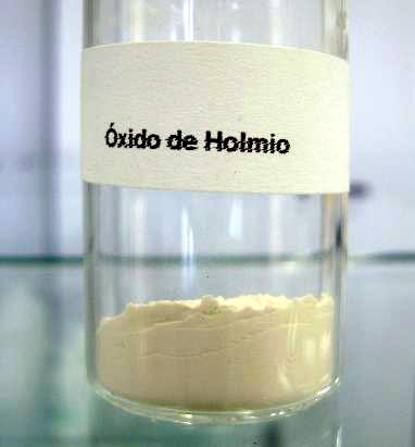 • O óxido de hólmio, uma substância de cor amarela, foi preparado por O. Homberg e é utilizado para colorir vidros
