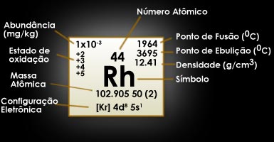 ( H2SO4 ) concentrado e aquecido quando finalmente dividido. O ródio apresenta um ponto de fusão maior que a platina e uma densidade menor.